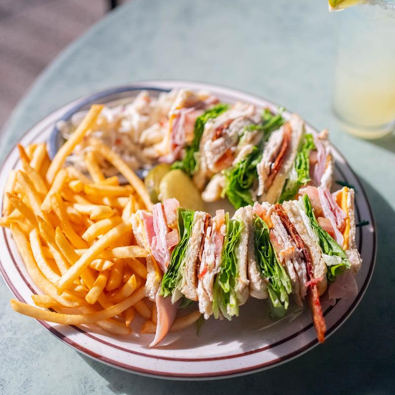 All sandwiches are served with French fries and a choice of green salad, potato salad, coleslaw, or fruit.