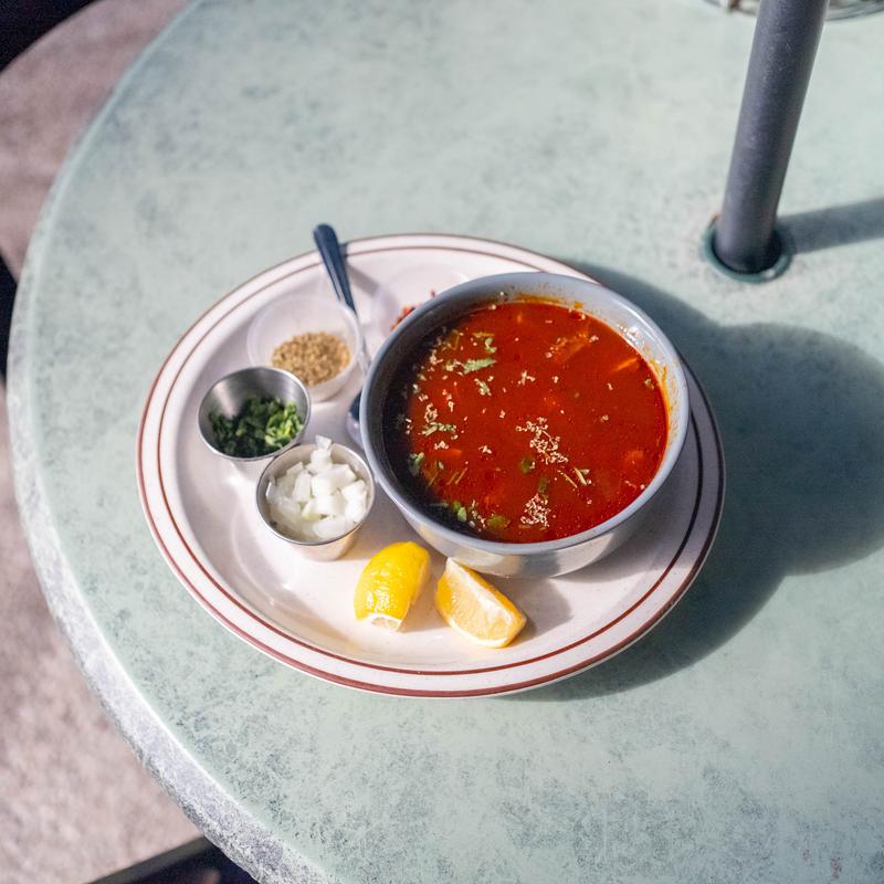 Senior $15.99 | Regular $19.99 • Two corn tortillas topped with chorizo, bell pepper, onions, tomatoes, three eggs, and Spanish sauce topped with cheese.